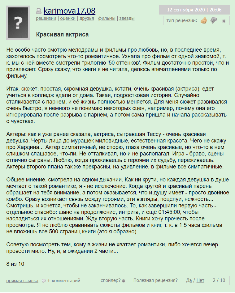 Франшиза «После» одновременно очень популярна и неоднозначна. Она вполне соответствует своему жанру, использует стандартные для него клише и ничем не удивляет ни с точки зрения сюжета, ни с точки зрения смысла.